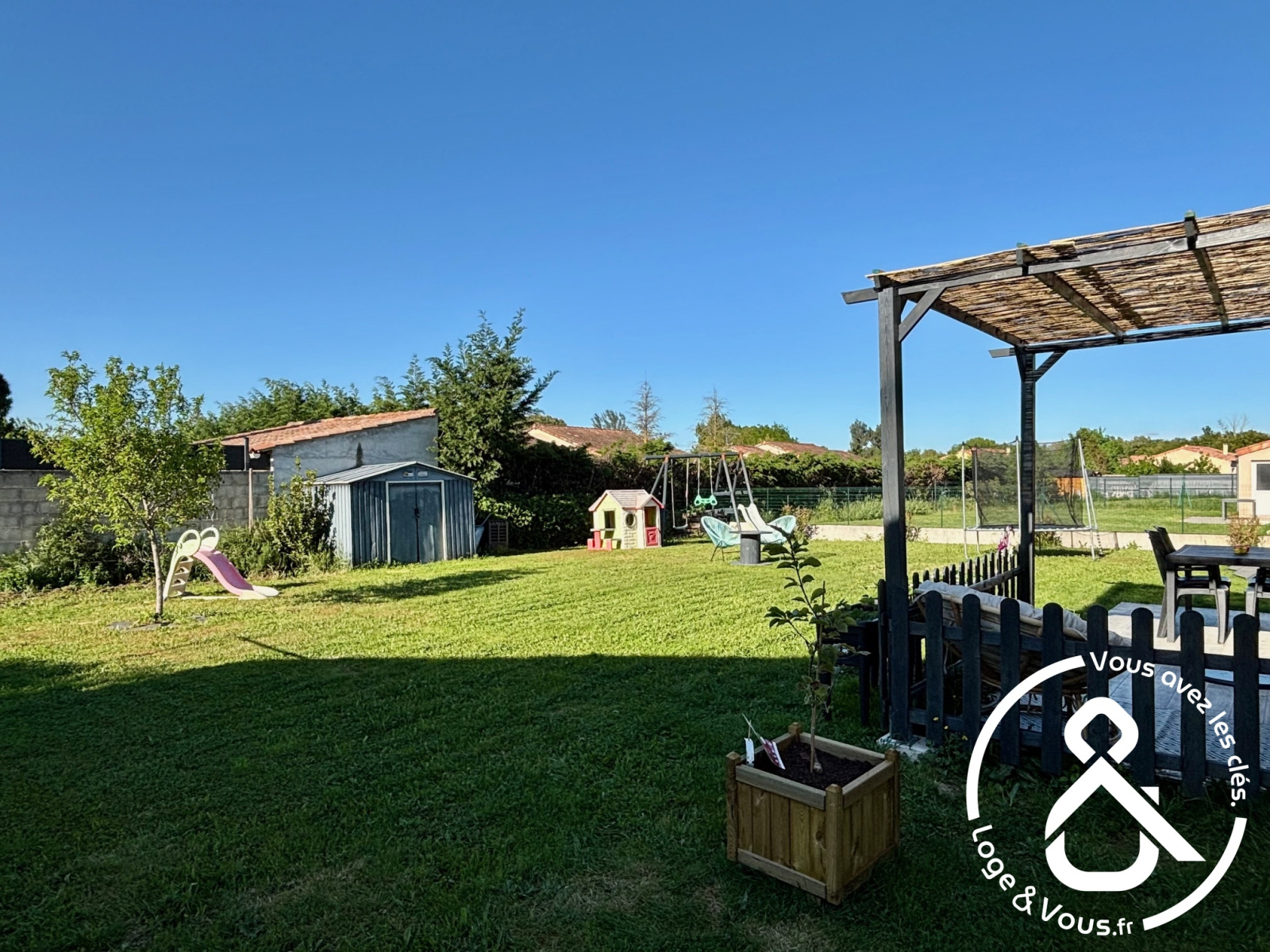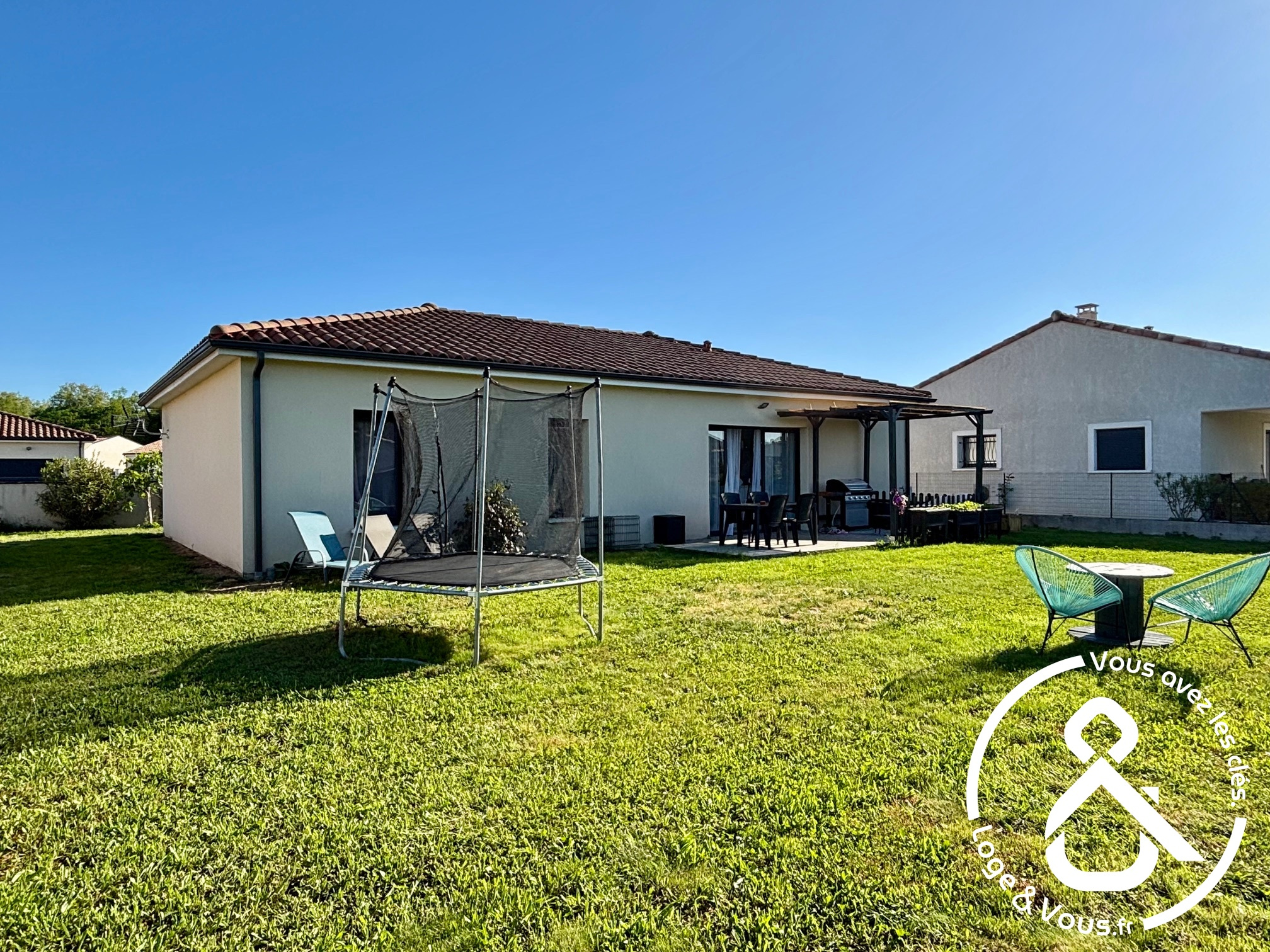 D’une surface agréable, il offre un bel espace de vie lumineux avec une cuisine américaine ouverte sur le séjour, trois chambres confortables, une salle de bain et des WC séparés. À l’extérieur, un jardin privatif permet de profiter des beaux jours en toute tranquillité.