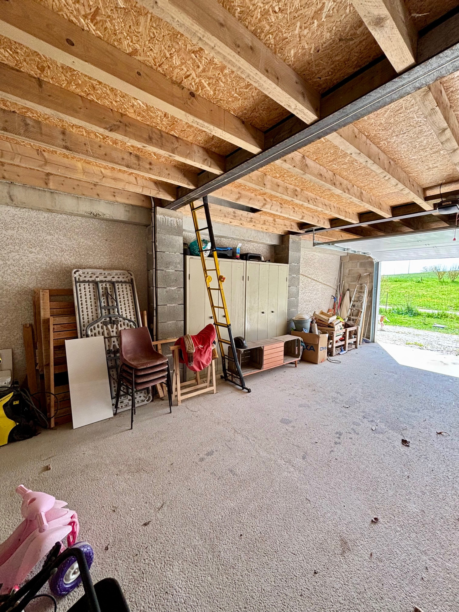 À l’extérieur, la vue dégagée invite à la détente, et le grand garage attenant laisse entrevoir de belles possibilités d’aménagement supplémentaires.