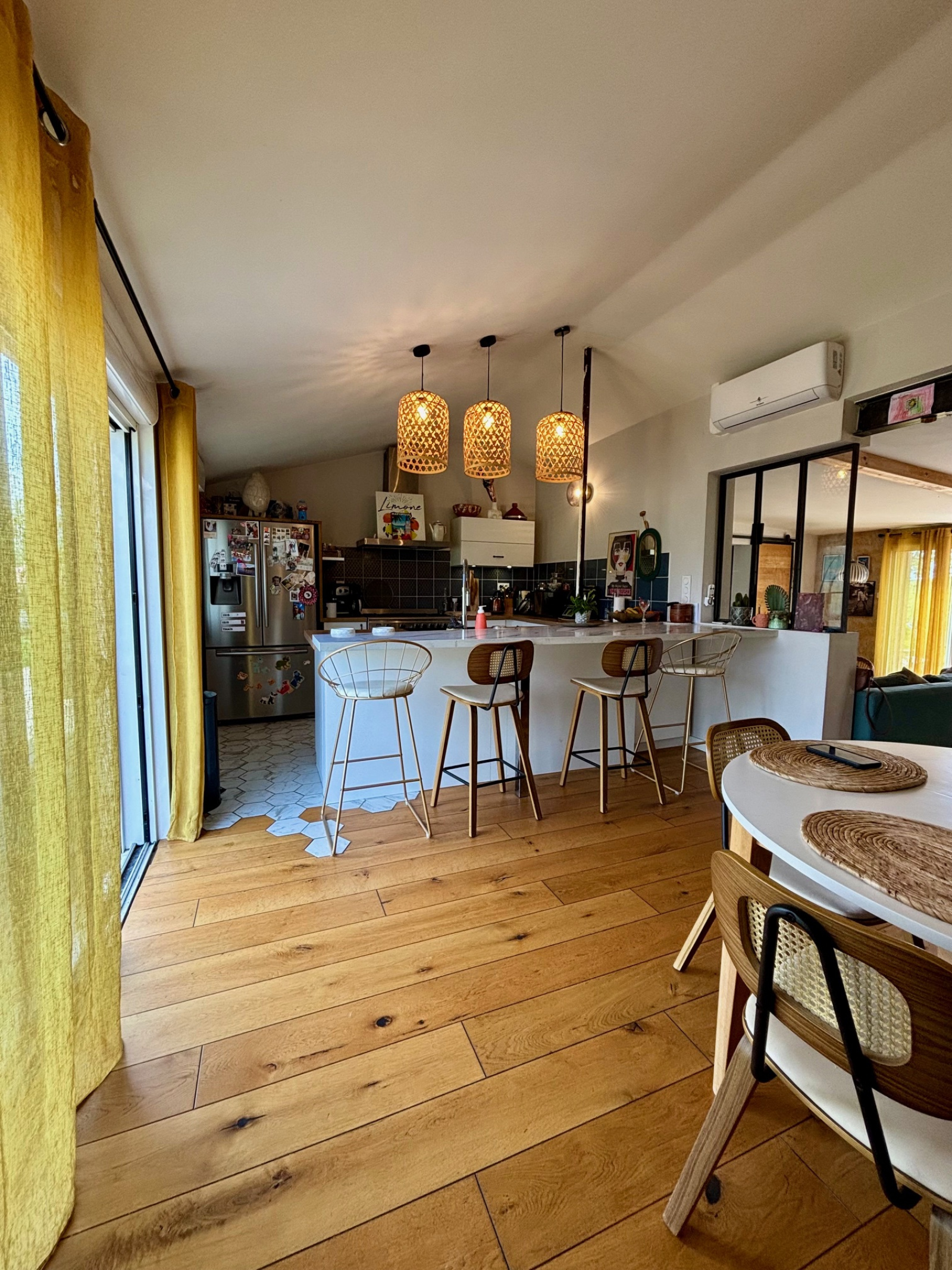 Dès l’entrée, on est séduit par le bel espace de vie baigné de lumière, où la cuisine ouverte s’intègre parfaitement à un séjour convivial et chaleureux. Trois chambres viennent compléter l’ensemble, dont une avec une mezzanine pleine de caractère.