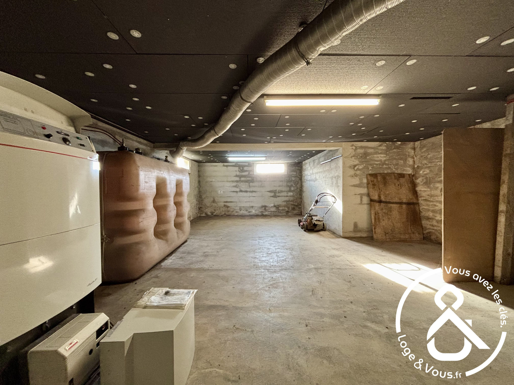Le sous-sol complet offre un garage, une buanderie et une chaufferie, ajoutant confort et praticité au quotidien.